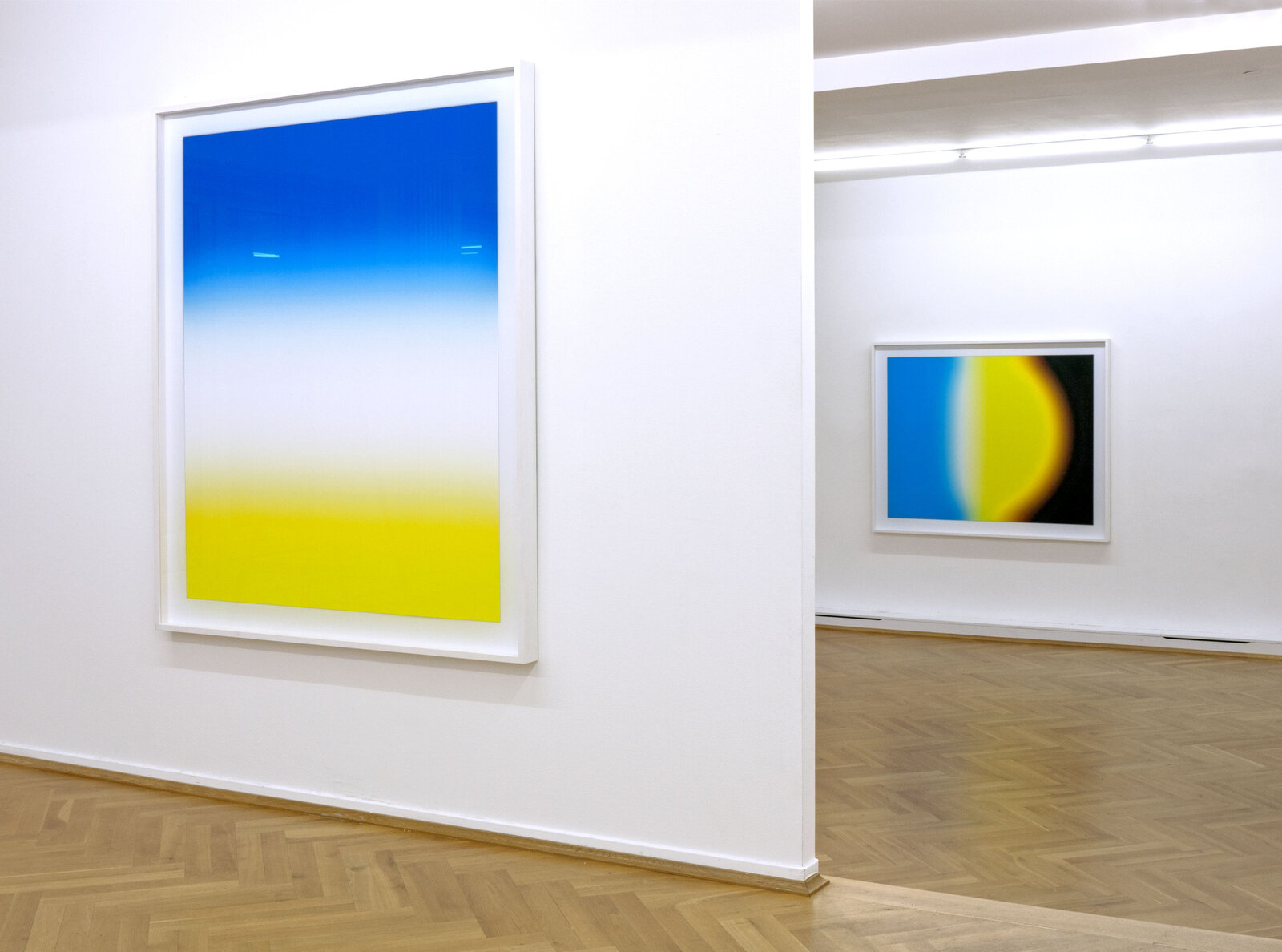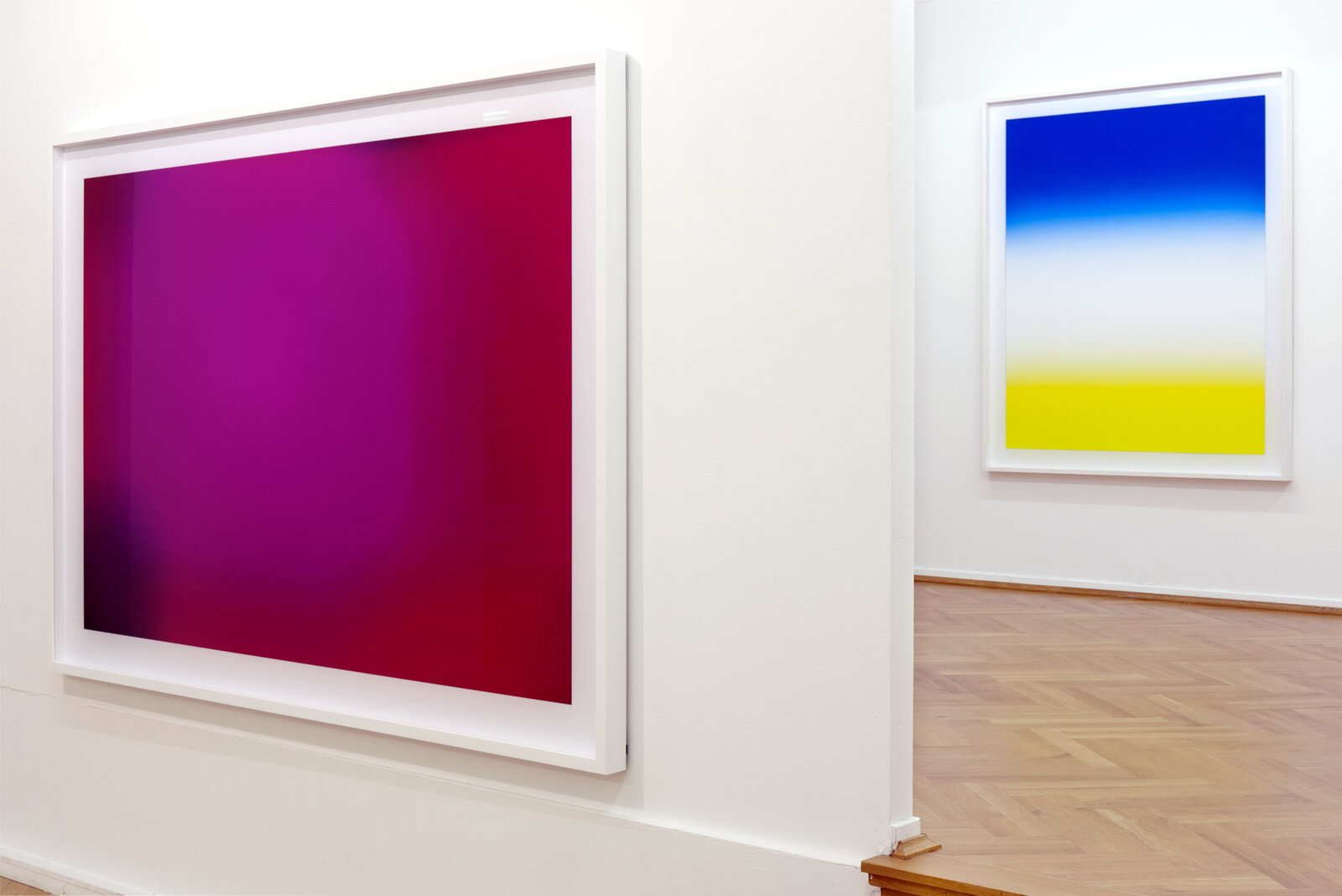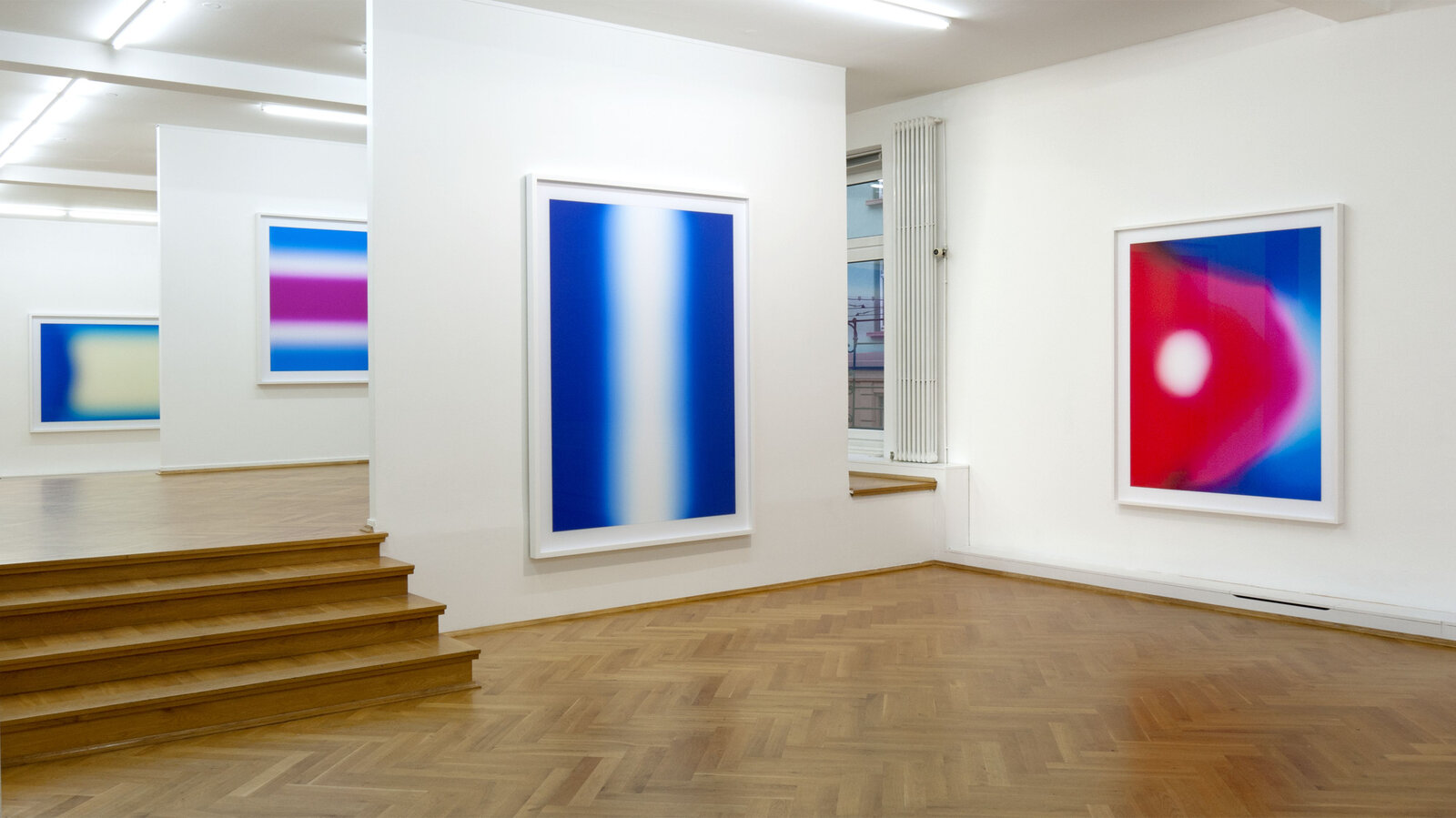 In der aktuellen Ausstellung werden acht Arbeiten aus der neuesten Serie "FLAGS" gezeigt. Die auf verschiedene Länderflaggen zurückgehenden Motive beleuchten die Relevanz der Farbe. Flaggen, sinngemäß Symbole zur nationalen Identifikation, sind in der Regel geometrisch konstruiert. Sie bedienen sich meist der Primärfarben.