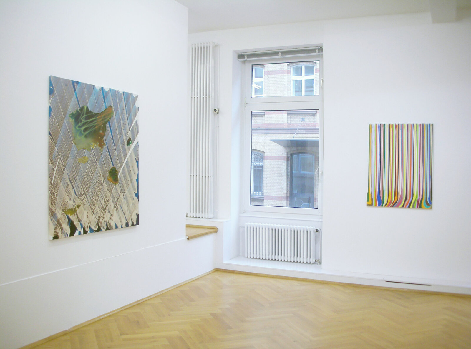Joanne Greenbaum, 1953 geboren in New York, schafft Bildgefüge einerseits durch streng formale Konstrukte und andererseits durch unbeschwerte malerische Gesten, die sich in einem vielschichtigen komplexen Bildraum verschränken. Wie auf verschiedenen Ebenen liegend, treffen geometrische und organische Formen aufeinander, geraten in Widerstreit und erscheinen doch systematisch miteinander verwoben.