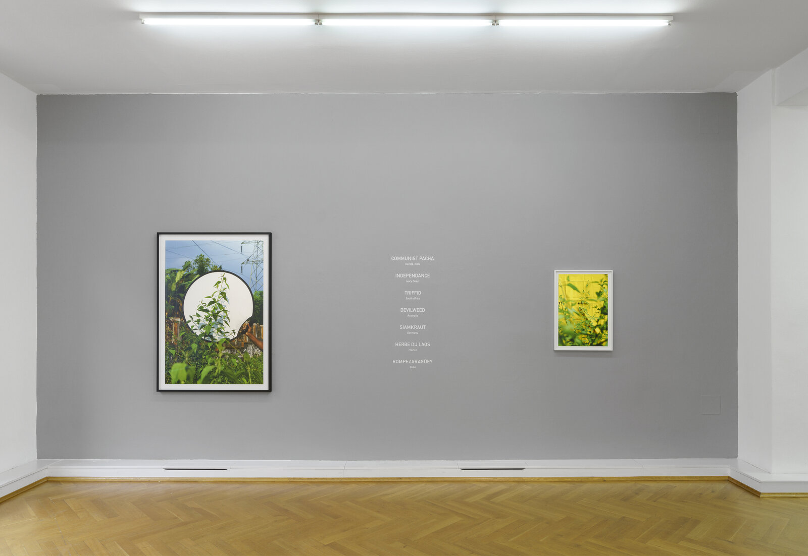Die Ausstellung collected stories versammelt neue Werkgruppen des Künstlers und Fotografen Flo Maak (Geb. 1980 in Fulda, lebt und arbeitet in Berlin).   Die ausgestellten Fotografien und Installationen beschäftigen sich mit Fragen des Zusammenlebens auf unserem beschädigten Planeten. Menschen tauchen bei Maak, wenn überhaupt, nur hintergründig auf, stattdessen sind Pflanzen, Tiere und Vulkane die bestimmenden Akteure in dieser Ausstellung. Die zentrale Installation "The Red Green" erzählt von der weltweiten Verbreitung der Pflanze Chromolaena odorata, welche in Deutschland als Siamkraut bekannt ist. Sie gilt in vielen Ländern als sogenannte invasive Art, was sich auch in lokalen Namen wie Devil’s Weed widerspiegelt. Im südindischen Staat Kerala hingegen wird sie Communist Pacha genannt und mit der kommunistischen Bewegung assoziiert. Maak hat Bilder dieser Pflanze während eines Aufenthalts in Kochi, Indien, inszeniert. Seine Bilder, ergänzt durch eine handgewebte Flagge und eine textbasierte Wandarbeit, erzählen von der weltweiten Verbreitung dieser Pflanze und gehen Fragen nach (vermeintlicher) Herkunft, Zugehörigkeit und Migration nach. Eine Variation dieser Arbeit wird im Rahmen der Kochi-Muziris Biennale im November diesen Jahres gezeigt werden. Sie ist mit großzügiger Unterstützung des Goethe-Institut Max Mueller Bhavan Bangalore entstanden. Die Bilder der Serie „Ground Truthing - Mount Etna“ sind größtenteils in Sizilien entstanden. Während Wanderungen am Ätna hat der Künstler gelernt, dass Vulkanismus nicht nur eine zerstörerische Naturgewalt ist, sondern als Teil des globalen Energiekreislaufs mit Prozessen verbunden ist, die Leben auf der Erde möglich machen. Maak dokumentiert vulkanische Landschaften und Spuren von Infrastruktur in diesen und setzt diese Bilder ins Verhältnis zu menschlichen Körpern und Akteuren. Er kombiniert dabei inszenierte mit vorgefundenen Szenen, spielt mit Formaten und Präsentationsformen, und schafft so ganz unerwartete Verbindungen. In der begleitend zur Ausstellung erscheinenden Publikation schreibt die Soziologin Katharina Hoppe zusammenfassend: „Leben und Natur, das machen die Arbeiten Flo Maaks sichtbar, können wir uns nicht als Garten Eden vorstellen, der zerstört wurde und zu dem nun zurückzukehren wäre. Die Grenzen von Organismen sind prekär und durchlässig. Körper stehen in Abhängigkeitsverhältnissen mit und sind durchdrungen von heterogenen Anderen, wie Organismen, Artefakten oder Bakterien. Sie sind uneinheitliche „Multitudes“: Versammlungen, Bewegungen, Konstellationen, die zunächst schiere Ko-Existenz jenseits politischer Rahmenbedingungen, Staatlichkeit oder sozialer Kontrakte beschreiben.“ Flo Maak studierte von 2004-09 Freie Kunst an der Städelschule - HfbK, Frankfurt, bei Prof. Wolfgang Tillmans und ist Meisterschüler von Prof. Willem de Rooij. Von 2013-2017 war er Professor of Fine Art Photography an der Chung-Ang University, Seoul, Südkorea.