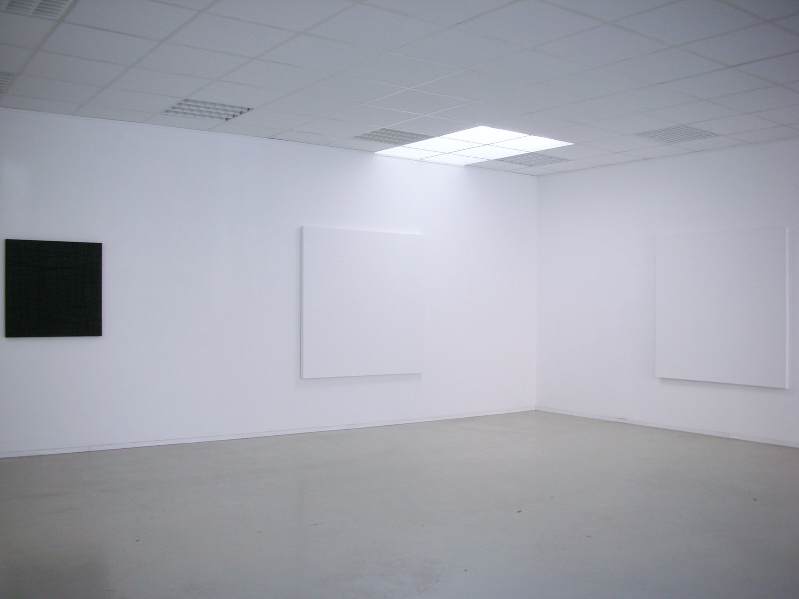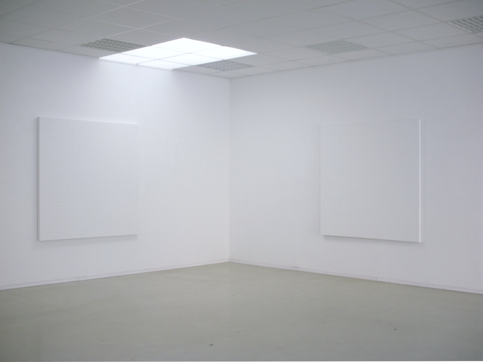 Bernhard Knaus Fine Art zeigt in einer zweiten Einzelausstellung neue Arbeiten des österreichischen Künstlers Herbert Hinteregger. Seine Werke sind vor allem Ausdruck ihrer eigenen Gegenständlichkeit. Monochrome weiße, nur mit Grundierung bearbeitete Leinwände, auf denen Strukturen, Linien und Rasterungen deutlich werden. Wie schon bei seinen Werken mit Kugelschreibertinte hebt Herbert Hinteregger die Wirkung der Farbe und der Leinwand in deren Materialität und Oberflächenstruktur hervor. Dabei trägt er die Grundierung schichtweise auf, so dass die Struktur der Leinwand noch deutlich zu erkennen bleibt, aber auch durch die Farbe eine Rasterung entsteht. Die Leinwand als räumlicher Gegenstand einerseits und Bearbeitungsoberfläche andererseits bildet in Verbindung mit der Farbe, die alles Licht in sich aufnimmt, eine Art Relief, eine räumliche Struktur.