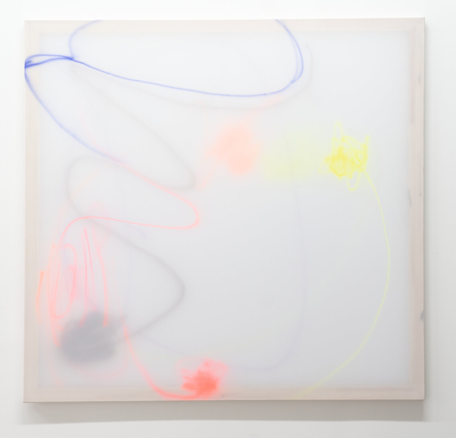 In unserer Einzelausstellung „von leisem gewicht“ setzt sich Holme intensiv mit der Fragilität und gleichzeitig auch der Beständigkeit von Materialien auseinander. Die in der Ausstellung verwendeten Ausgangsmaterialien fokussieren sich auf recyceltes Aluminium (Offset Druckplatten) und Fahnenstoff, die durch Schlagmetalle, Farbe, Lacke, Tusche oder mit Air Brush bearbeitet wurden. Während Aluminium schon länger Bestandteil ihres Oeuvres ist, ist der Diskurs und die Forschung an Fahnenstoff verhältnismäßig neu. Teils zieren kräftige und dynamisch aufgetragene Neonfarben die Werke. An anderer Stelle nimmt die Künstlerin das Spiel mit der Transparenz auf und lässt den Betrachter die einst leuchtenden Farben durch eine zweite, davor gespannte Lage Fahnenstoff nur noch in einer verblassten Version durchschimmern sehen. Es entstehen teilweise doppelt bespannte Keilrahmen, die aufgrund der Materialbeschaffenheit zu leuchten scheinen. Eine unbekannte Energiequelle scheint Leuchtkästen zu generieren. Die Transparenz des Fahnenstoffes lässt ein Erarbeiten von Linien und Flächen sowohl von hinten als auch von vorne zu und so entstehen Werke, die ihre Kraft aus dem Zusammenspiel des Prozesses, der Reaktionen und der Schichtungen generieren. Es ist eine Malerei die mit Sichtbarkeiten und Unsichtbarkeiten spielt, mit Leichtigkeit und dezidierter Bestimmtheit.