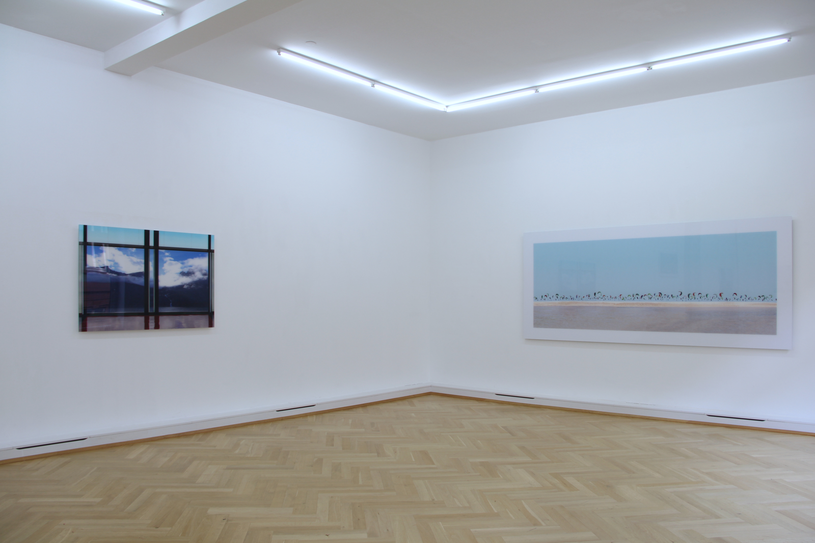 Im Gegensatz dazu stehen die ebenfalls ausgestellten Arbeiten Ralf Peters mit den Titeln Balloon, Kite und Prince. Hier zeigen sich Arbeiten am Rande des Kitsch. Traumwelten, Phantasiegebilde und Ideallandschaften in den schillerndsten Farben. Das Bild wird hier anders gewichtet, denn der Künstler präsentiert uns Scheinwelten, in welchen man sich nur zu gern verlieren würde statt sich mit der harten Realität auseinanderzusetzen.