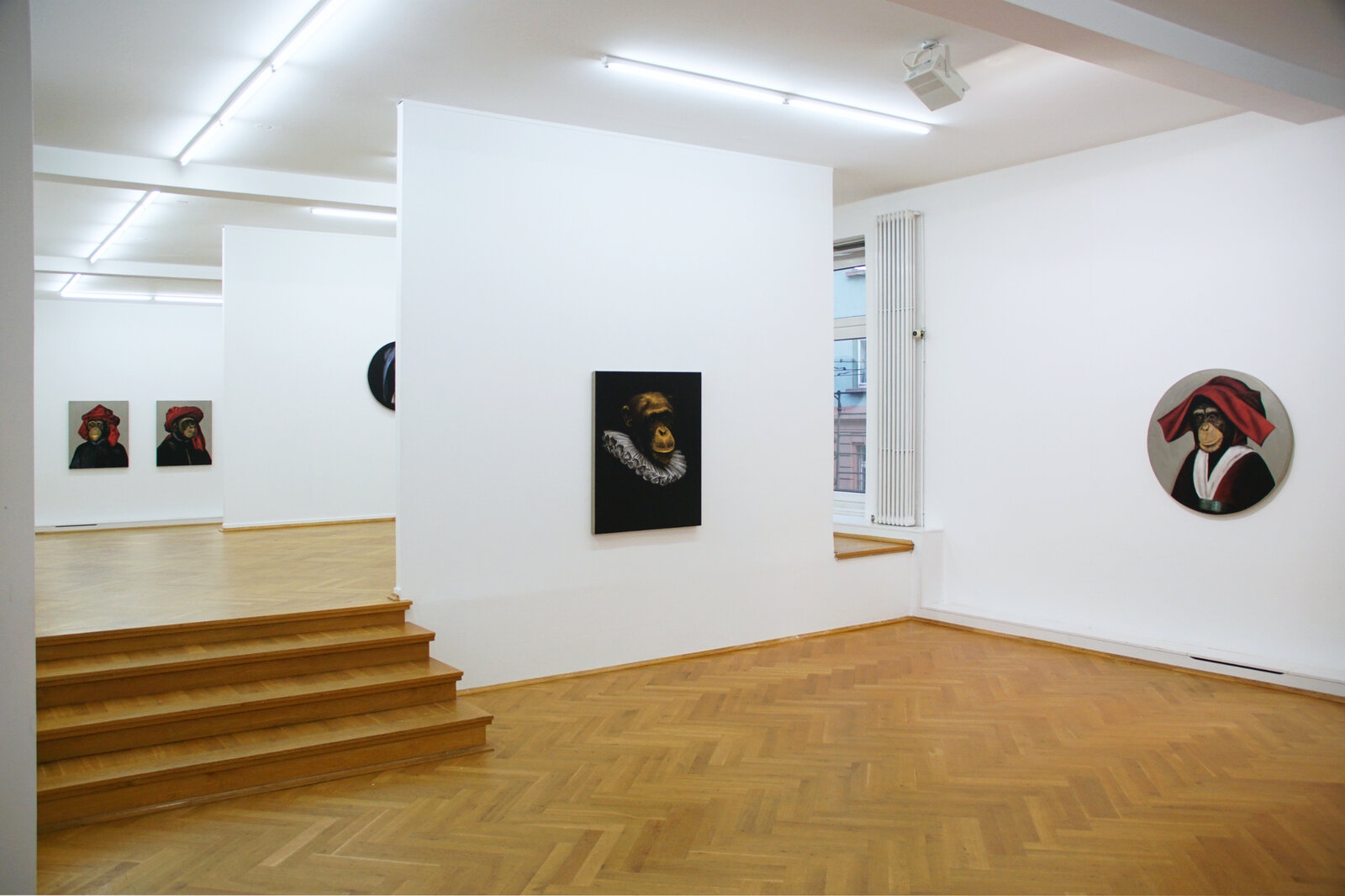 Habe auch ich nun einen Affen angewiesen, vielleicht einen solchen gar mit Stendhal-Syndrom, seinesgleichen als Van-Eyck-Gemälde zu malen? Sind die Bilder gegebenenfalls eine Ahnengalerie späterer Verwandter des Lemuren Chardins? Oder bin ich es selbst, der scheinbar ein Spiel treibt und darin umgekehrt in die Rolle eines Menschaffen schlüpft, um „unbewusst“ und lustvoll befreit die alten Meister zu imitieren? Ist es jene Rolle des Primaten, der sich seines Unbewusstseins dennoch sehr bewusst ist? Oder sind meine Affenporträts gar ein Spiegel, dessen Vorhalten als gebrochen ironische Geste gegenüber Kritik und Kunstbetrieb zu verstehen ist, ähnlich Chardins Ärger und Missbehagen gegenüber gewissen Kollegen und kulturbetrieblichen Einflussnehmern? Prima Primaten!