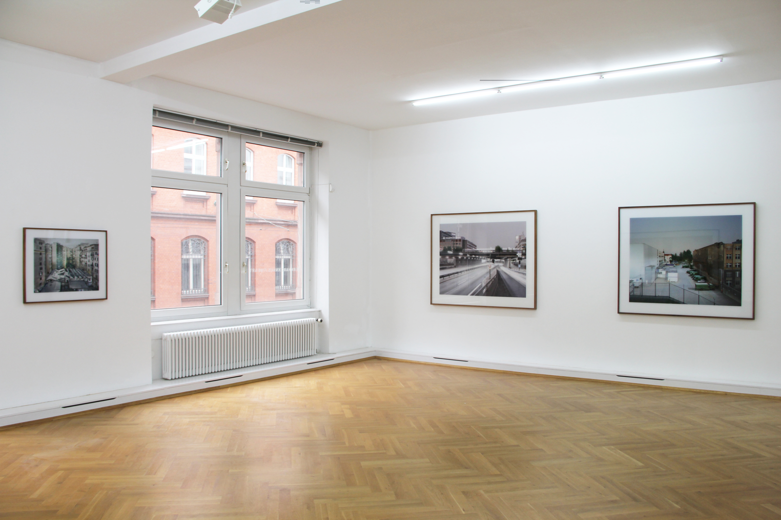 Thomas Weinbergers großformatige Arbeiten erinnern an ungewöhnliche Momente, wie sie sich uns vor Gewittern und deren schnell wechselnden Lichtverhältnissen zeigen; oder Momente kurz vor der Dämmerung, wenn die letzten Sonnenstrahlen flach auf Fassaden treffen und unwirkliche, traumhafte Situationen erzeugen. Jedoch stellt der Betrachter schnell fest, dass es sich hier nicht um reale, vom Fotografen so vorgefundene Situationen handeln kann: Diese vor allem durch das Licht evozierte Stimmung, die in den Fotografien Weinbergers vorherrscht, wurde künstlich erzeugt.